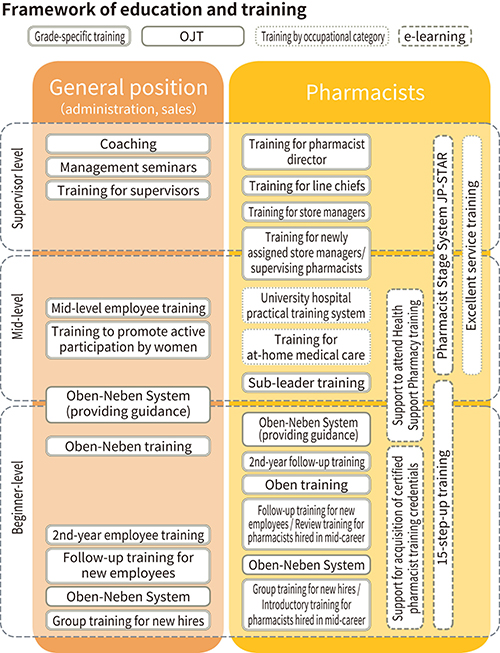As the Dispensing Pharmacy Business has already achieved “recruitment of high-quality pharmacists,” we have moved on to the next step, which is the phase for “high-quality education.” We have launched the Pharmacist Stage System in April 2018, recommending acquisition of internal credentials. The Company also provides full support so that employees can step up to acquiring more advanced external credentials. Because hospital training in