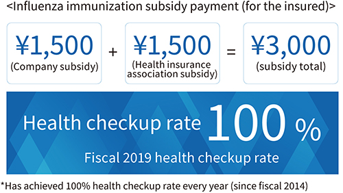From fiscal 2018 we have strengthened measures with regard to disease prevention. In addition to the health insurance association providing subsidies to those employees who have received their influenza immunization, NIHON CHOUZAI also grants a subsidy.