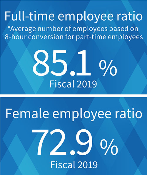 We have introduced a system that affords employees flexibility in changing their employment contracts so that they can easily shift from a full-time employee status to a contracted or part-time employee status in accordance with life events and changes in their living environments. In addition, we have created a system which will enable employees to preferentially return to the Company after they have retired on account of compelling personal reasons, such as marriage, childbirth, child rearing, caregiving, or the work transfer of a spouse.