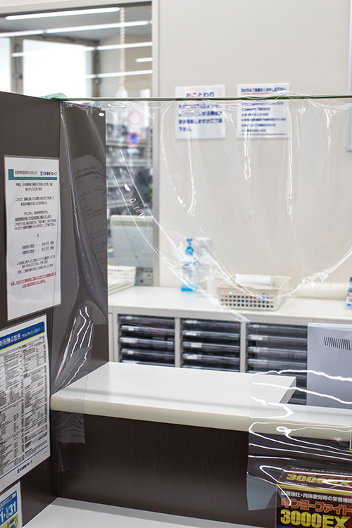 - Installing acrylic and vinyl partitions at receptions and medication guidance counters to prevent droplets from scattering