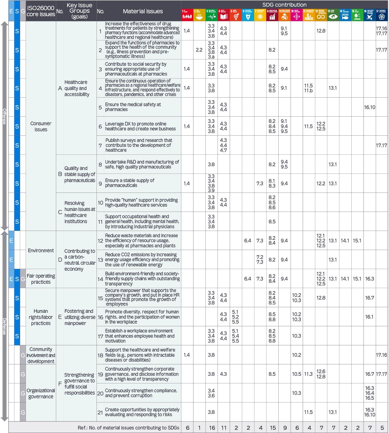 21 Material Issues (key issues) being targeted by Nihon Chouzai Group
