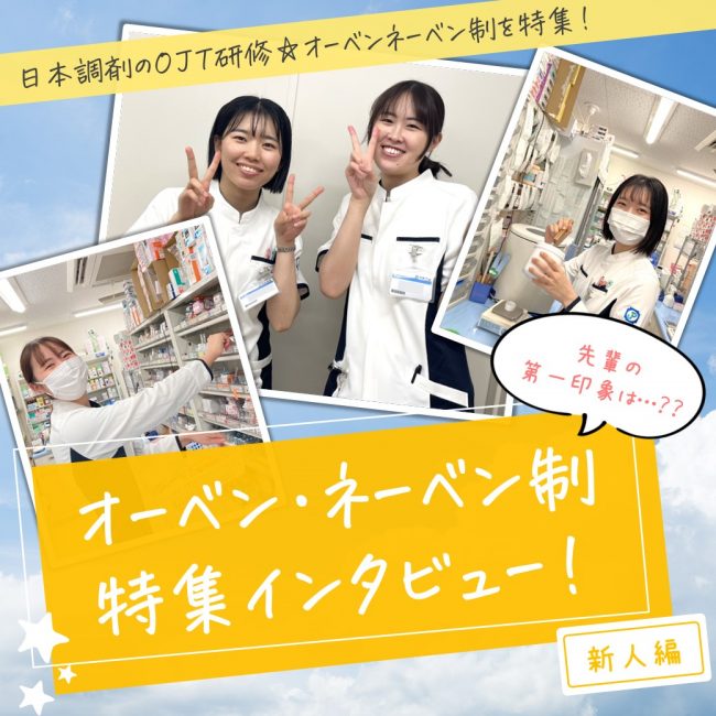 4月に行われた新人集合研修から半年。 日本調剤では、新人(ネーベン)に指導役の先輩(オーベン)が1年間マンツーマンで指導する「オーベン・ネーベン制」があります。 今回は日々成長しているネーベンと、その成長を支えるオーベンへのインタビュー企画を全3回にわたってお送りします! 初回は同じ店舗で切磋琢磨するネーベンのお二人で… -