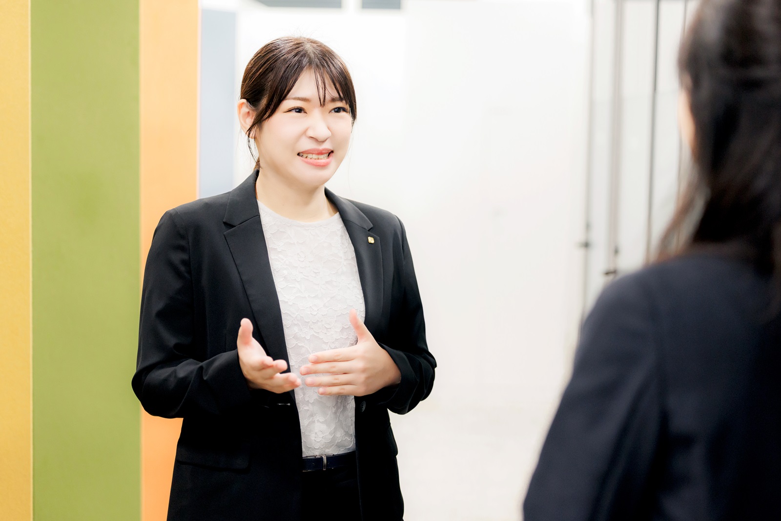 新任エリアマネージャーとして活躍するHさん。担当エリアの店舗にもよく足を運ぶように心がけていらっしゃるそうで、エリア職員の魅力やご自身の目標を楽しそうに話してくださいました。